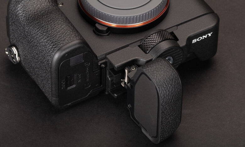 a7CR, vidalı bir GP-X2 kavrama genişleticiyle birlikte gelir. Bu tam olarak vaat ettiği şeyi yapıyor: elinizin uzanabileceği biraz daha fazla yükseklik sağlamak için ön tutma yerini genişletmek. Kameranın tripod yuvasına vidalanan ve hemen altında dişli bir yuva sunan yeterince basit bir tasarımdır. Pil erişimine izin vermek için açılan oldukça hantal bir bölüm var.