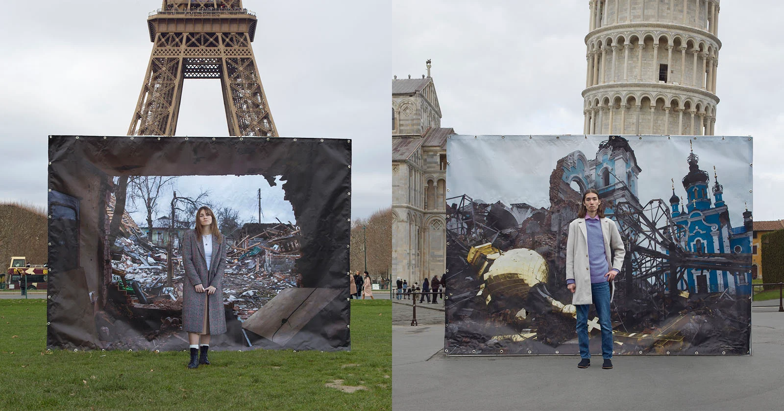 Fotoğrafçı Danila Tkachenko, Avrupa’nın dört bir yanına dağılmış Ukraynalı mültecileri buldu ve Rus işgali nedeniyle kendi ülkelerinin başına gelenleri anlatan 3 metrelik fotoğrafların önünde portrelerini çekti.
