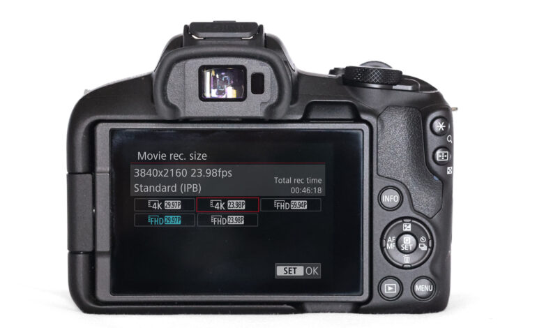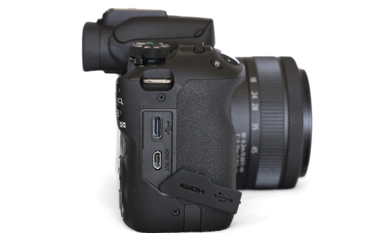 Tamamen eklemli arka dokunmatik ekran hoş bir dokunuş. R50’de bir mikrofon giriş soketi var, ancak kulaklık takacak yer yok, bu da vlog çekiciliğini biraz zayıflatıyor.