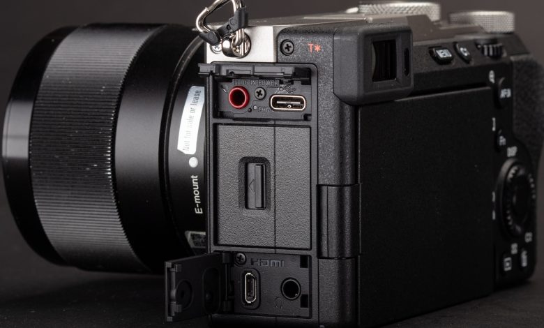 a7C II’nin kavramayan tarafı boyunca, tek UHS-II SD yuvasını bulacaksınız (yukarıdaki resimde kapalı kapı). Üstündeki kapak (açık) mikrofonu ve USB-C bağlantı noktasını gizlerken, alt kapak ise HDMI ve kulaklık girişlerini güvende tutuyor. Hem kulaklık hem de mikrofon bağlantı noktalarının standart 3,5 mm olduğunu unutmayın.