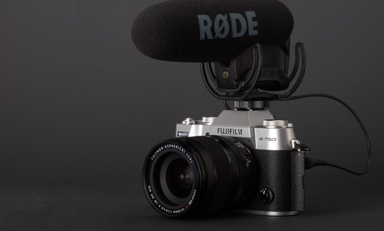 X-T50’nin bir mikrofon soketi vardır ancak sesi izlemek istiyorsanız USB-kulaklık adaptörü gerektirir.