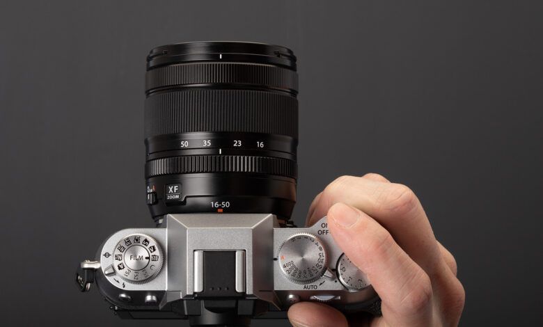 X-T50, üst plakasına özel deklanşör hızı ve pozlama kompozisyonu kadranları yerleştirir ve hatta özelleştirilebilir bir düğme için yer bulur.