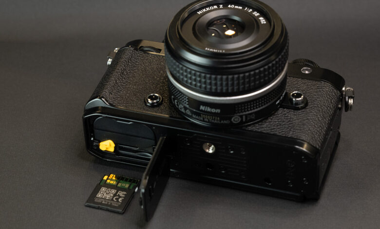 Nikon, Zf’ye iki kart yuvası verdi ancak boyutunu kontrol altında tutmak için ikinci kart yuvasını MicroSD tipi yapmayı tercih etti. Bunlar oldukça küçüktür ve kameraya takılması ve çıkarılması zahmetli olabilir, bu nedenle hızlı bir microSD kartı çok sık çıkarmayı planlamak yerine, kamerada her zaman taşma olarak bırakmak mantıklı olabilir. Bununla birlikte, SD yuvası UHS II uyumluyken Micro SD yalnızca UHS I’dir.
