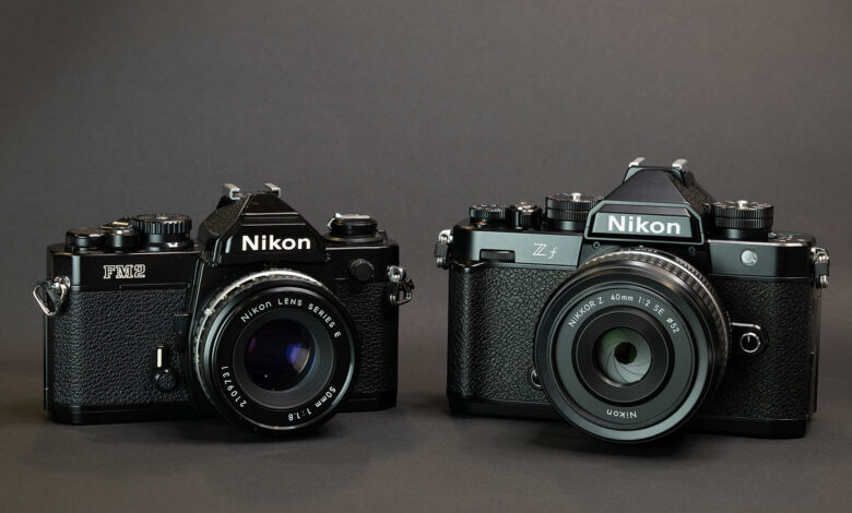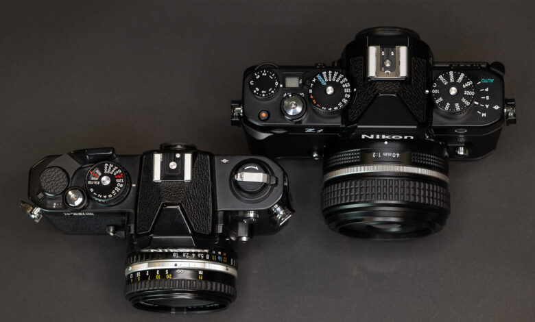 Zf’nin gövdesi hakkında söylenebilecek en bariz şey, 1980’lerdeki Nikon FM2 film kamerasına çok benzediğidir. Yan yana yerleştirildiğinde yeni kameranın daha büyük olduğu anlaşılıyor ancak oranlar korunuyor, bu nedenle hala parçaya uygun görünüyor.