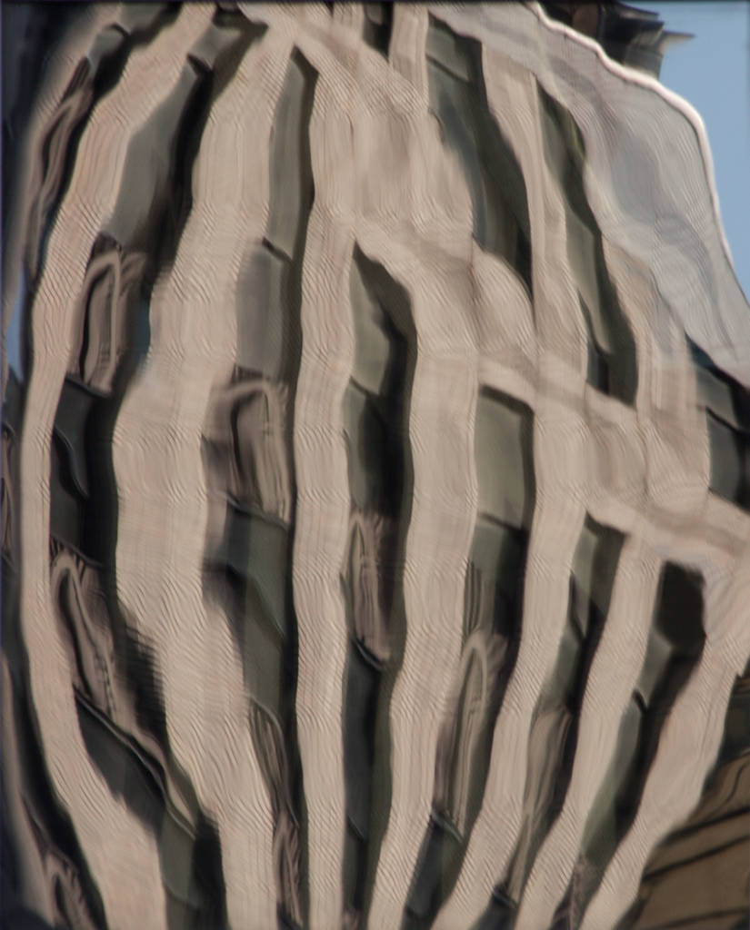 Manhattan ve New York’taki gökdelenlere mimaride “glazing distortions” adıyla bilinen deformasyon işlemiyle devinimli bir yapı kazandıran Muñoz, ışığı yansıtan ve kırılma etkisiyle gökdelen yüzlerinde oluşan farklı şekil ve ışık huzmelerine odaklanıyor. Binaların yakınlığı ve sıkışlıklığıyla bildiğimiz gökdelen manzaraları Vicente Muñoz’un eserlerinde gerçeklikten sanal dünyaya uzanan bir kapı aralıyor.
